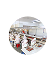 屠宰過程質量控制設立了放血、肛門結扎、食管結扎、剝皮、去白臟、去紅臟、胴體修整、剝骨、部分肉修整九個關鍵工序和宰前檢疫、排酸、金屬探測四個關鍵控制點。每道工序及點位都有專職品控人員進行監控,有效的保證產品質量。 環境衛生控制:采用班前、班中、班后清洗消毒制度。公司擁有進口泡沫清洗系統,對設備、設施、工器具進行雙重清洗消毒;班后采用大型臭氧機,對生產環境空氣進行物理消毒,每天由化驗室根據檢驗計劃進行檢測,確保環境衛生合格。 包裝方面:冰鮮產品全部采用世界知名品牌“希悅爾”包裝袋及真空機,熱縮隧道,能有效提高保水性防止營養流失,抑制細菌滋生,延長保質期。 X光檢測:公司最新配置兩臺進口X光異物掃描檢測設備,對所有產品進行覆蓋式檢測。以往檢測機只針對金屬產品,現已延伸至所有生產過程產生的異物,同時檢測精度更加準確并配置自動剔除裝置。