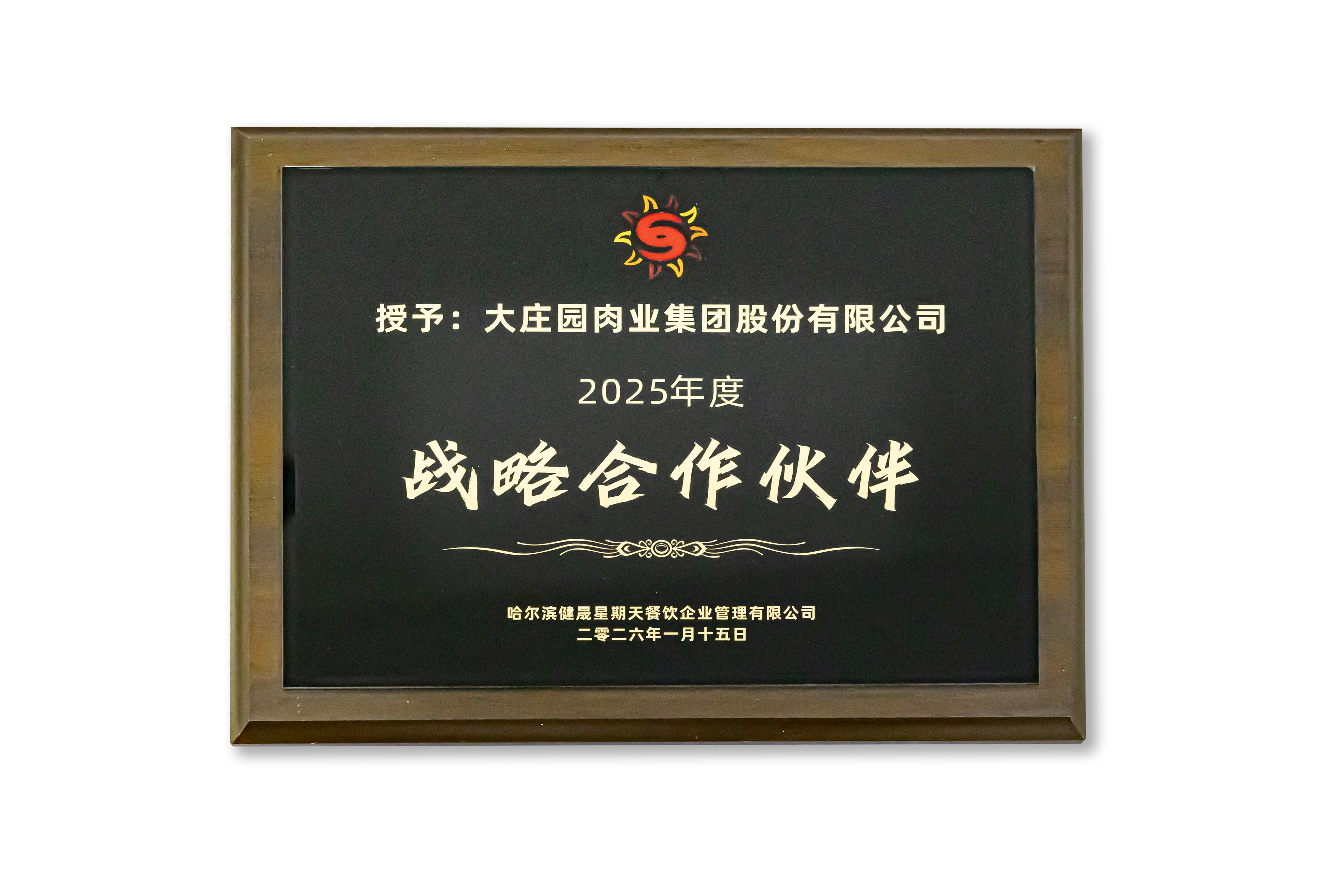 2026年1月6日,哈爾濱健晟星期天餐飲企業管理有限公司年會在大連舉辦,大莊園集團榮膺2025年度戰略合作伙伴。